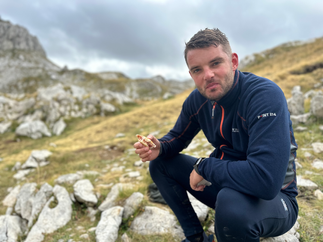Inmiddels heb ik uitgevogeld dat ik vanuit mijn bed uitkijk op de, vanochtend nog steeds achter de wolken verscholen 2160 meter hoge Paljevine. Daarachter ligt Bobotov Kuk, met 2523 meter de hoogste top van het Durmitor massief. Tussen beide pieken loopt de 14 km lange sectie van de route van de BlackLake xtri marathon die verplicht met een buddy afgelegd moet worden. Met Boy dus. Vandaag stond een verkenning op het programma van het stijgende gedeelte van deze sectie tot en met het hoogste punt op zoān 2300 m. Nadat we ons jongste gezinslid Jack hadden gefeliciteerd met zijn 15de verjaardag gingen we rond het middaguur op pad.